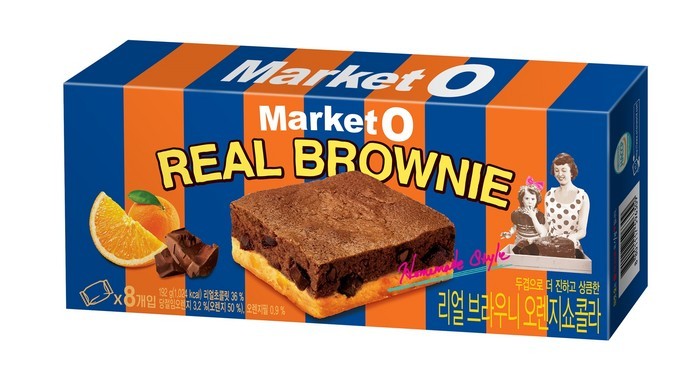 마켓오리얼브라우니오렌지 쇼콜라는진짜 오렌지를 넣어 만든 상큼한 오렌지 브라우니와 진한 초콜릿 브라우니, 두 겹으로 만들었다. 기존 ‘마켓오리얼브라우니’의 진하고 쫀득한 맛은 그대로 살리되 오렌지의 상큼함을 조화시켜 더욱 고급스러운 맛을 냈다고. 이번 신제품은 한국 본사와 일본 지사가 제품 기획 단계부터 함께 참여했다.