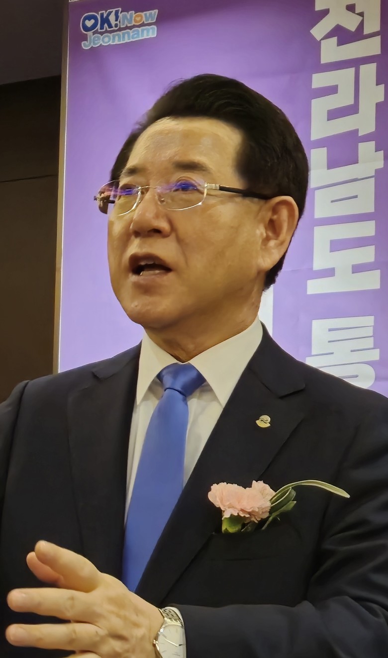 | ▲김영록 전남지사가 지난 6일 수원 노보텔 앰배서더 호텔에서 열린 경기도호남향우회 정책비전투어에 참석 후 본보와의 인터뷰에서 호남 소외를 극복하고 대한민국의 더 큰 미래, 새로운 미래를 만드는 데 선도적 역할을 해야겠다는 사명감으로 대선 출마 의지를 드러냈다. |