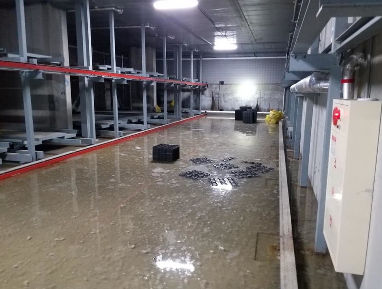 침수가 우려되는 상황에서는 감전이나 누전 위험을 차단하기 위해 비상정지 버튼을 눌러 기계 작동을 중지시키고, 건물 메인분전반의 전원을 차단하여야 한다.