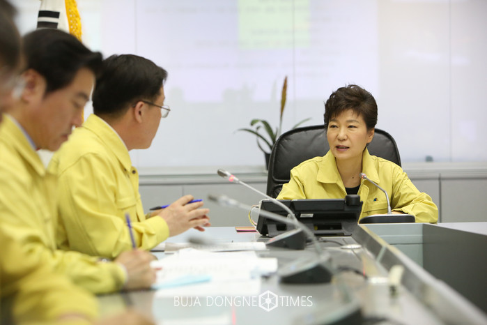 박근혜 대통령이 16일 오후 정부서울청사의 중앙재난안전대책본부를 찾아 전남 진도 해상에서 침몰한 여객선 사고 상황에 대해 보고 받고 있다. 2014.04.16. (사진=청와대 제공)