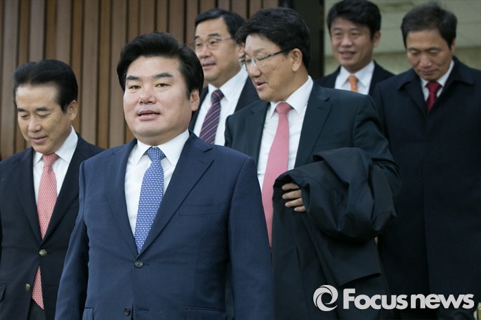| △ 원유철(앞) 새누리당 원내대표를 비롯한 원내지도부가 4일 오전 서울 여의도 국회에서 열린 원내대책회의에 참석하고 있다. <사진제공=포커스뉴스> |