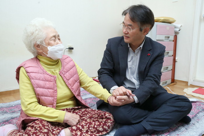[사진설명] 이동환 고양특례시장이 독거 어르신의 안부를 묻고 있다.