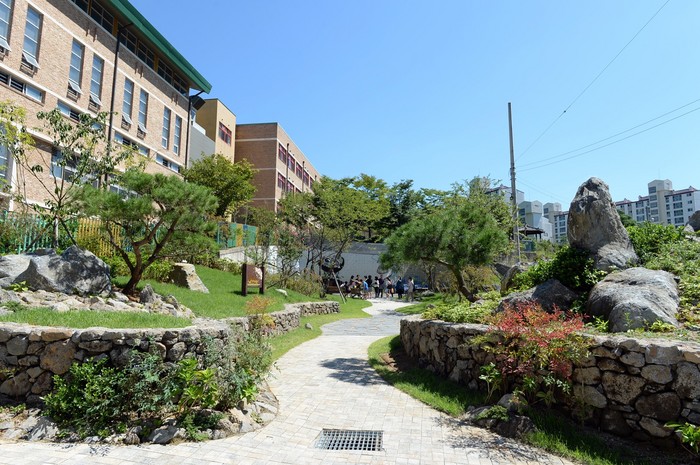 [광주=부자동네타임즈 손권일 기자] 불법 경작이 이뤄지던 광주광역시 남구 진월동 진제초등학교 주변 부지에 기암괴석과 수목이 어우러진 아름다운 작은 정원이 조성됐다.