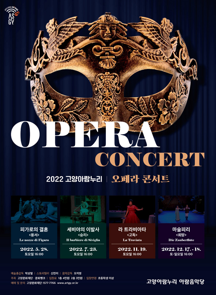 5월 피가로의 결혼을 시작으로 7월에는 로시니의 세비야의 이발사, 11월에는 베르디의 라 트라비아타, 12월 크리스마스를 앞두고는 모차르트의 마술피리가 차례로 무대에 오르며 2년에 걸친 아람누리 오페라 콘서트 시리즈 대단원의 막을 내린다. 매 회 한국인이 가장 사랑하는 오페라의 누구나 한 번쯤은 들어봤을 주요 아리아를 감상할 수 있으며, 국내 정상의 유명 성악가와 제작진이 완성도 높은 공연을 준비하고 있어 온 가족이 함께 관람하면 좋은 프로그램이 될 것이다.