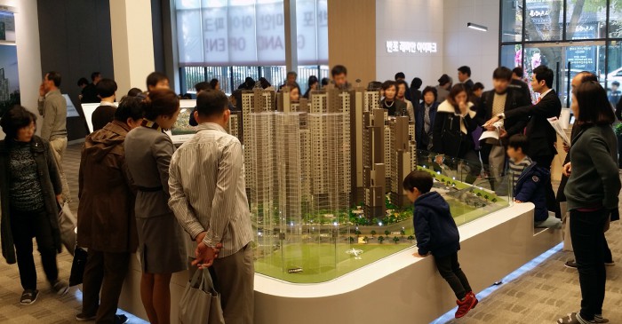 | △ 현대산업개발과 삼성물산이 분양하는 반포 래미안 아이파크 모델하우스를 찾은 고객들이 견본주태을 꼼꼼하게 살펴보고 있다. <사진제공=현대산업개발> |