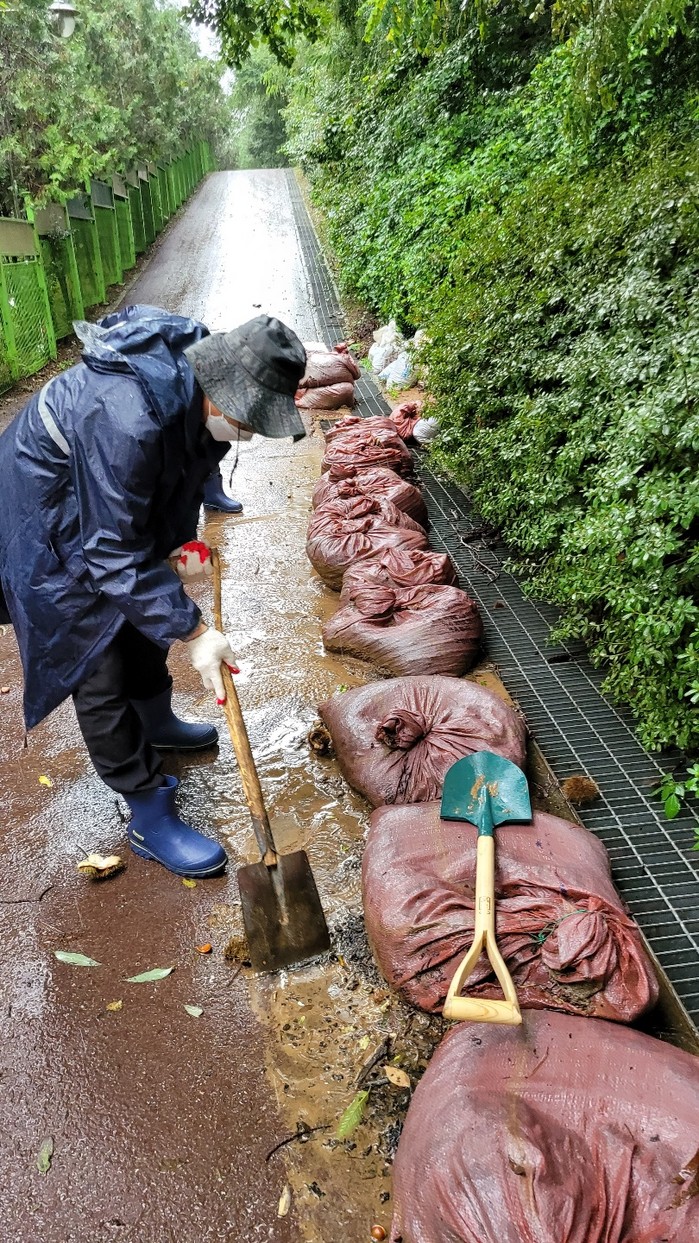 또한 급류, 사면붕괴 등을 고려해 대지와 임야 인접 배수로를 정비하고 모래주머니를 이용하여 토사유실 구간을 응급조치하였다. 어린이공원 내 바람에 날리거나 부서질 수 있는 시설물은 미리 고정하거나 제거작업을 실시하여 사고위험으로부터 단단히 대비했다.