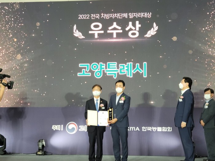 [부자동네타임즈 김인수기자] 고양특례시(시장 이동환)가 21일 정부세종컨벤션센터에서 개최된 고용노동부 주관 ‘2022 전국 지방 자치단체 일자리대상’에서 장관상(우수상)을 수상했다. 이로써 시는 경기도 유일 4년 연속 수상이라는 성과를 달성했다.