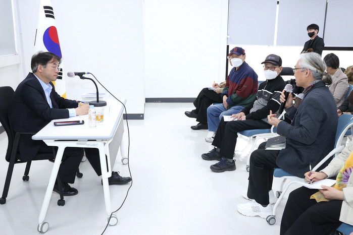 한편, 이 시장은 지난해 진행한 소통간담회에서 나온 탄현근린공원 2단계 조성사업 시 문화체육시설 설치와 경의로 한빛지하차도~앵골과선교 부근 도로정비, 신분당선 연장 요구 등에 대한 검토사항을 전달하고, 장애인 택시 운행 개선과 주민지원시설 확충 등 새로운 건의사항을 청취했다.