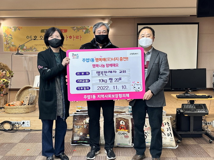 [부자동네타임즈 김인수기자] 고양특례시 주엽1동 지역사회보장협의체(공공위원장 이권재)는 지난 10일 관내에 위치한 행복한제자 교회(담임목사 이우열)로부터 사랑의 쌀 (10kg) 20포를 기탁 받았다고 밝혔다.