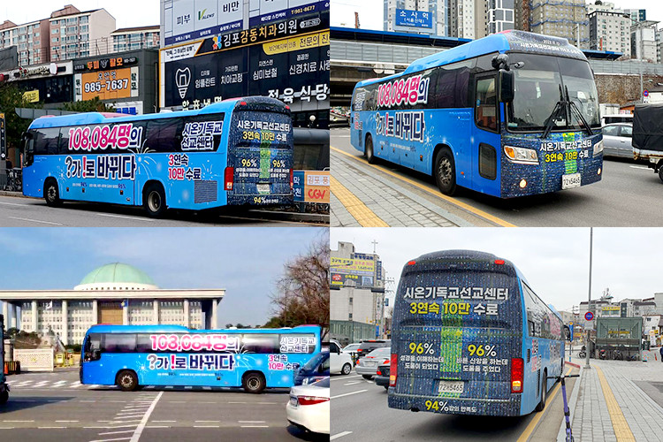 해당 랩핑버스는 지난 11월 12일 시온기독교선교센터 108,084명이 수료한 소식을 담고 내달 4일까지 운행한다.