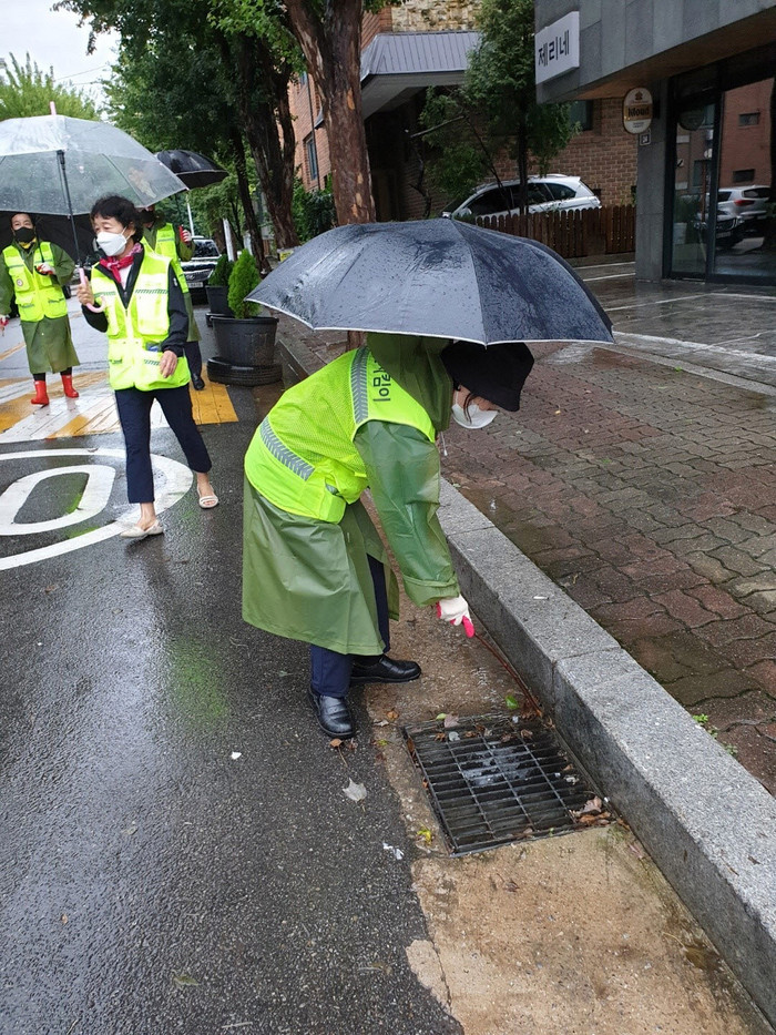 이번 순찰은 태풍 힌남노가 강력한 세력으로 사전 대비가 강조되는 가운데 주민들이 피해예방에 힘을 보태기 위해 순찰을 실시하였다. 관내 빗물받이 주변 쓰레기 청소, 가로등의 전기선 노출 여부, 위험 간판 등 낙하물 확인 등을 중점적으로 점검했다.