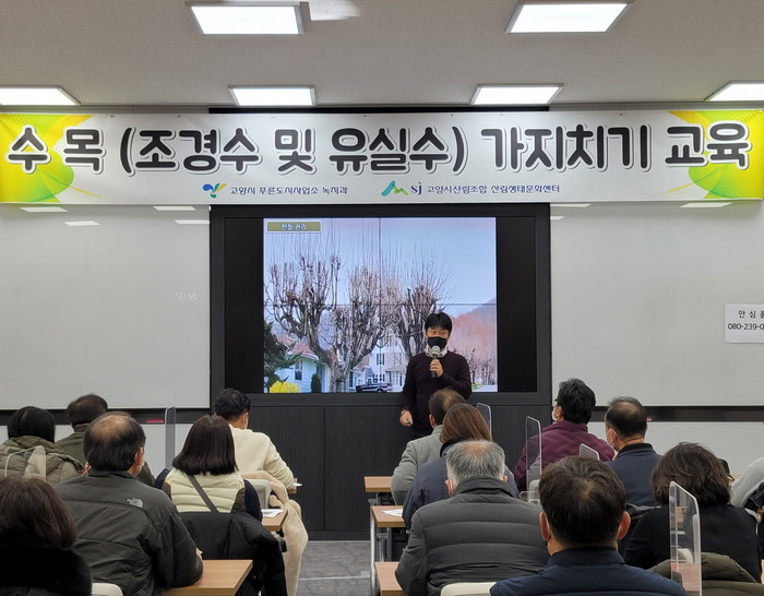 [부자동네타임즈 김인수기자] 고양시가 가로수 등 수목 가지치기 교육을 식사동 산림생태문화센터에서 실시했다고 10일 밝혔다. 교육에는 일반시민, 관내 조경공사업체 관계자 및 담당 공무원 등 90여명이 참여했다.