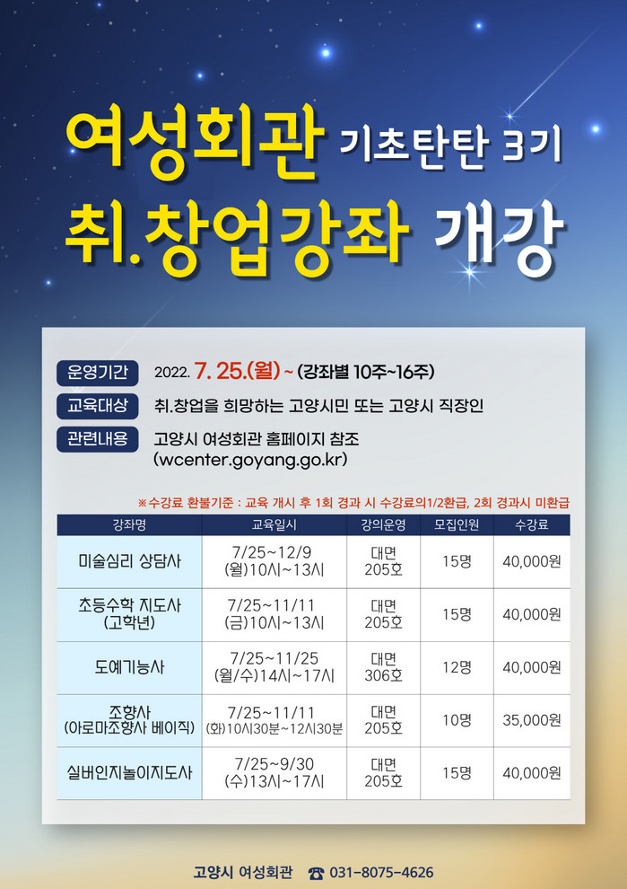 자세한 내용은 고양시 여성회관 홈페이지와 전화로 확인하면 된다.