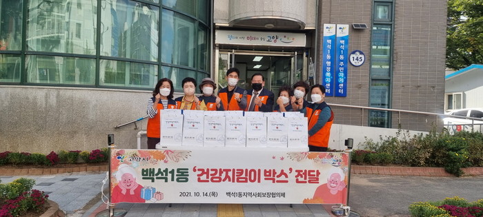 [부자동네타임즈 김인수기자] 고양시 일산동구 백석1동지역사회보장협의체(위원장 오호현)가 지난 14일 관내 저소득 독거노인 20가구에‘건강지킴이 박스’를 전달했다.