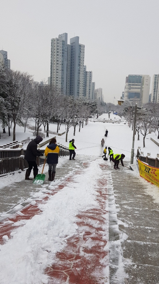 이번 제설작업은 21일 새벽부터 내린 폭설로 인한 미끄럼 방지 등 시민 불편사항을 최소화하기 위하여 마두2동 행정복지센터 직원 및 마두2동 제설봉사단이 눈을 치우고 염화칼슘을 뿌리며 내린 눈이 결빙되지 않도록 신속하게 진행됐다.