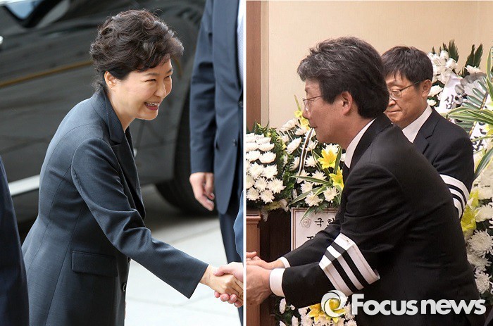| △ 새누리당 유승민 전 원내대표의 부친 유수호(85) 전 국회의원 빈소에 박근혜 대통령이 조화를 보내지 않은 것과 관련해 청와대는 "고인과 유가족의 뜻을 존중한 조치"라고 재차 밝혔다. 좌측 사진은 10월 27일 시정연설차 국회를 방문한 박근혜 대통령. <사진=공동취재단> 우측 사진은 11월 8일 빈소에서 조문객을 맞이하는 유승민 의원의 모습. <사진=포커스뉴스 영상캡쳐> |