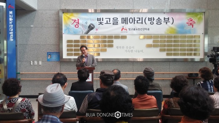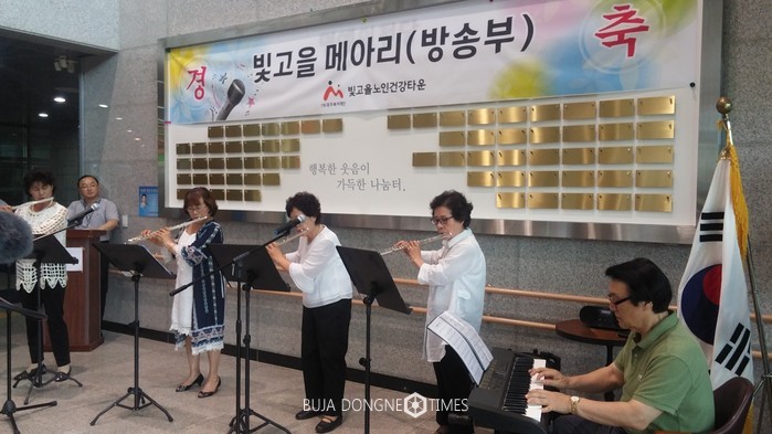 | △광주복지재단 빛고을노인건강타운은 7월 10일 복지관 1층 로비에서 '빛고을 메아리' 방송국 개국식을 가졌다 |