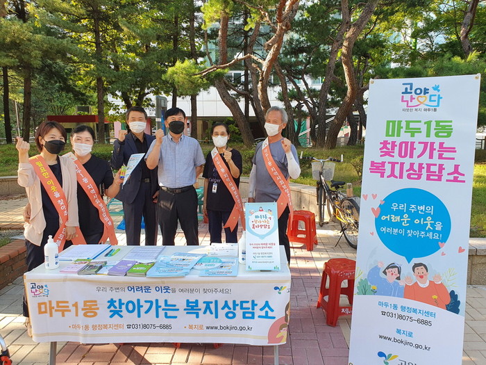 [부자동네타임즈 김인수기자] 고양특례시 일산동구 마두1동(동장 장문순)에서는‘찾복(福)-데이’ 주간을 맞이하여 복지위기가구 발굴을 위한 ‘찾아가는 복지상담소’운영 및 복지사각지대 발굴 캠페인을 백마공원 일대에서 진행했다고 23일 밝혔다.