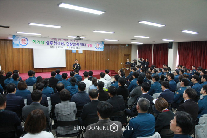 이기창 광주지방경찰청장은 3월15일 오전 광주북부경찰서를 방문해 현2장 경찰관들의 목소리를 듣는 시간을 가졌다.