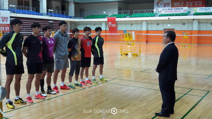 [부자동네타임즈 이세제 기자]박일호 밀양시장(경남양궁협회장)은 지난 5일, 오는 10월 20일부터 7일간 충주시 일원에서 개최되는 제98회 전국체육대회를 앞두고 추석 연휴도 반납한 채 훈련에 임하고 있는 경남 양궁선수들과 밀양시청 배드민턴 선수들을 방문 격려했다.