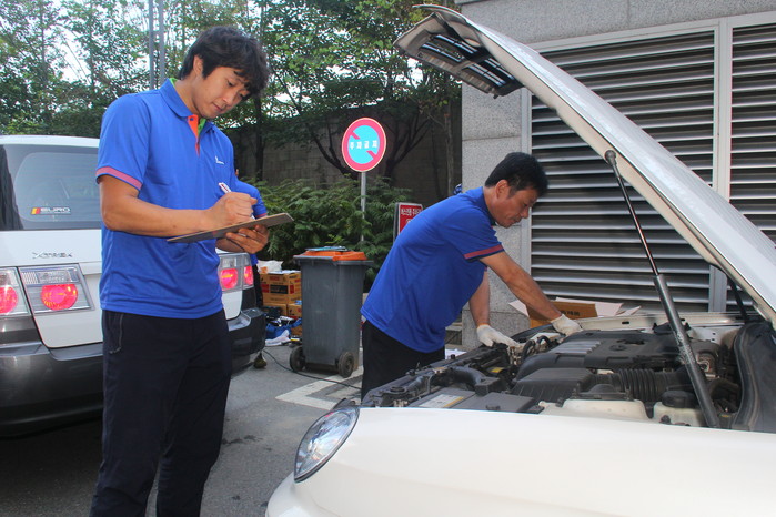 또 유리세정액 보충, 냉각수 점검, 각종 전구류 점검 및 교환, 타이어상태와 공기압, 엔진부 점검 등도 실시한다.