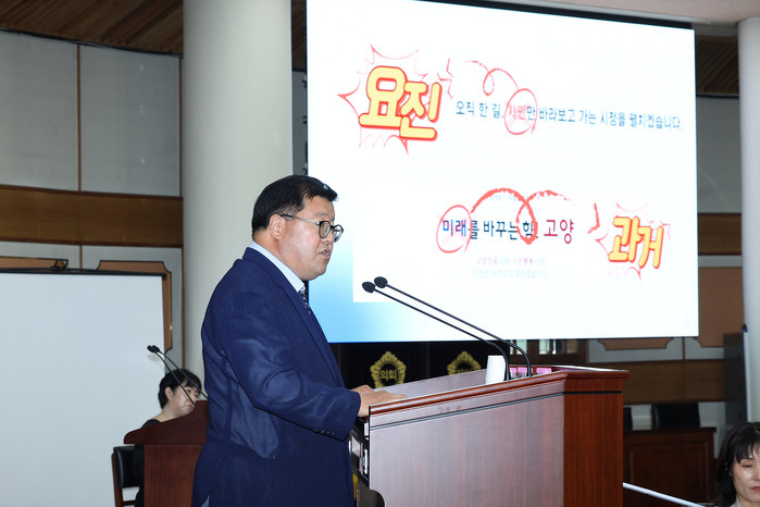 이외에 임의원은 "최근 요진업무빌딩 출입구 공사를 하는데 부시장이 지시한 것인지 고양시 예산으로 하는 공사인지"를 물었고 이정형 부시장은 "우리가 준공검사 이전에 출입구(정문)라든지 필요한 부분을 수정할 필요가 있어서 진행하고 있으며, 고양시 예산이 들어간 것은 없다"고 답변했다.
