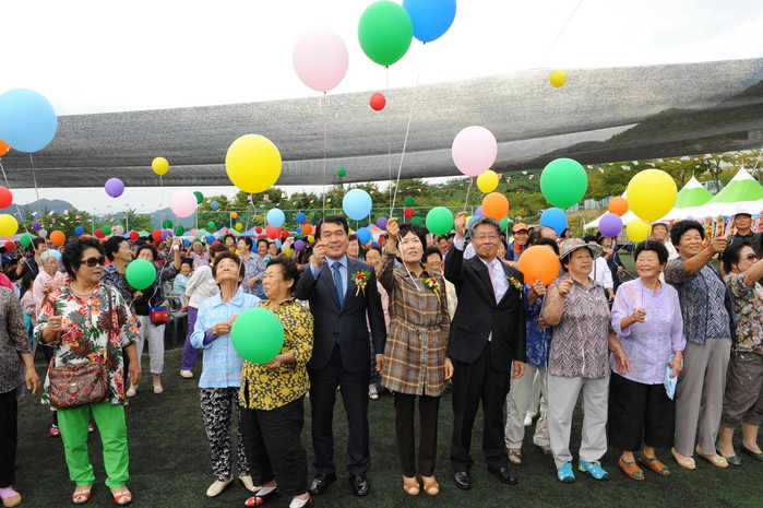 특히 구이면민의 날을 축하하는 패러글라이딩 축하비행이 하늘에서 날고 땅에서 면민 모두가 우리는 하나라는 한마음으로 손에 손잡고 소망풍선을 하늘에 날리며 화합의 의미를 되새기는 행사가 펼쳐졌다.