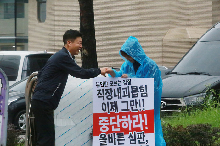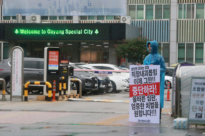 이러한 사태가 계속되자 직장 내에서 약자일수 밖에 없는 피해 직원들은 1인 시위(오◯◯, 유◯◯외 10명)가 자신들이 낼 수 있는 가장 큰 목소리로 생각하고 고양시청 정문에서 피켓을 들었다.