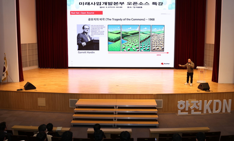 한전KDN(사장 김장현)이 27일 나주 본사 빛가람홀에서 임직원들을 대상으로 오픈소스 특강을 시행했다.