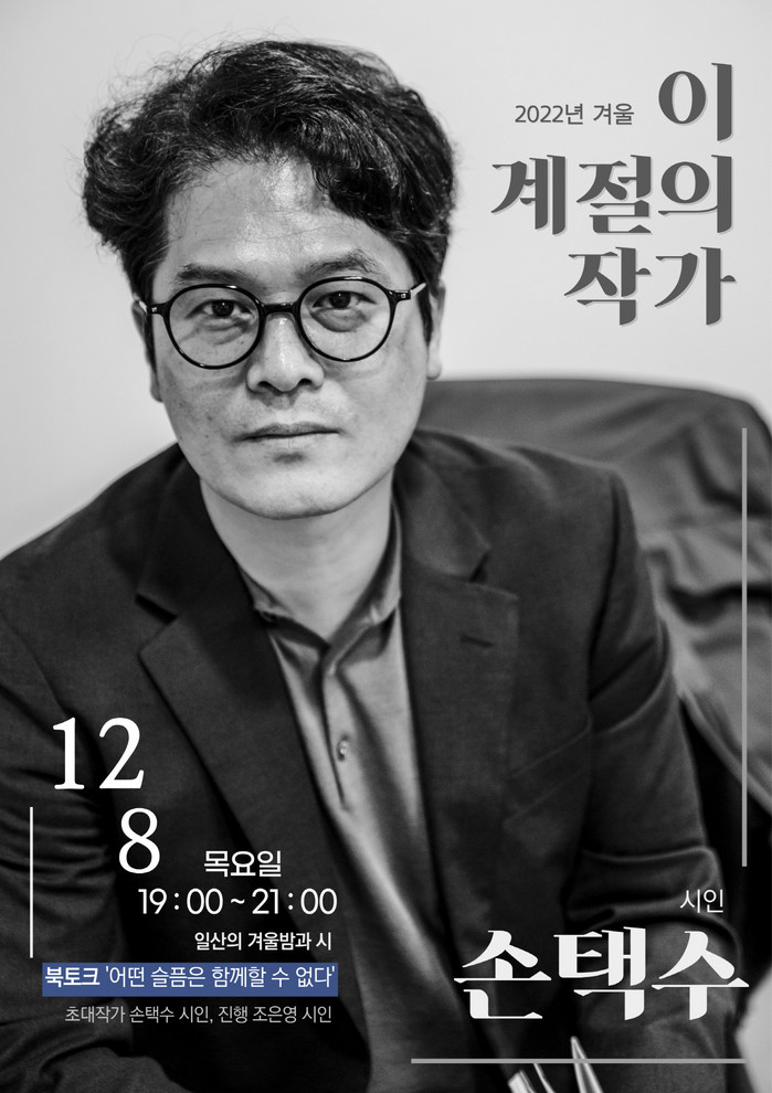 손택수 시인과의 만남은 2022년 12월부터 2023년 2월까지 ▲신작 북토크 ▲시 낭송회 ▲강연회로 진행될 예정이다.
