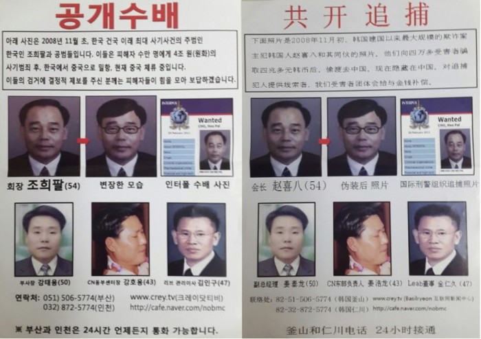 | △ '바실련'이 자체 제작한 조희팔 공개수배 전단 모습. 사진 우측은 중국어로 작성돼 있다. 주영민 기자 jjujulu@focus.kr |