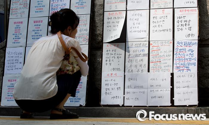 | △ 서울 영등포구 지하철2호선 대림역 인근 직업소개소 앞에서 한 중국인 여성이 일자리 광고를 살펴보고 있다. <사진제공=포커스뉴스> |