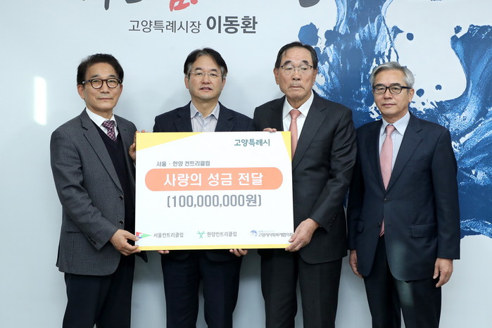 [부자동네타임즈 김인수기자] 고양특례시(시장 이동환)는 지난 12일 서울·한양 컨트리클럽에서 사랑의 성금 1억원을 기부했다고 밝혔다.