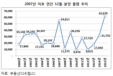 분양가 상한제 시행을 앞두고 밀어내기 분양이 있었던 2007년 12월보다 14.3% 많으며 지난해 12월에 비해서는 97.4% 증가한 수치다.