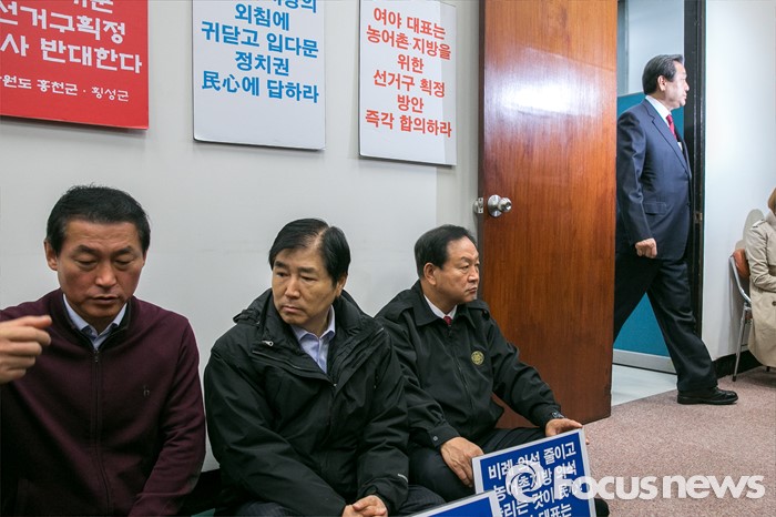 황영철(새누리·강원 홍천횡성) 의원은 성명서에서 "선거구 획정을 위한 협상 과정에도 우리의 정당한 요구는 받아들여지지 않았다"며 "농어촌의 주권과 대표성이 지켜지길 간절히 염원한 농어민에 대한 배신이자 기만"이라며 강도 높게 비판했다.