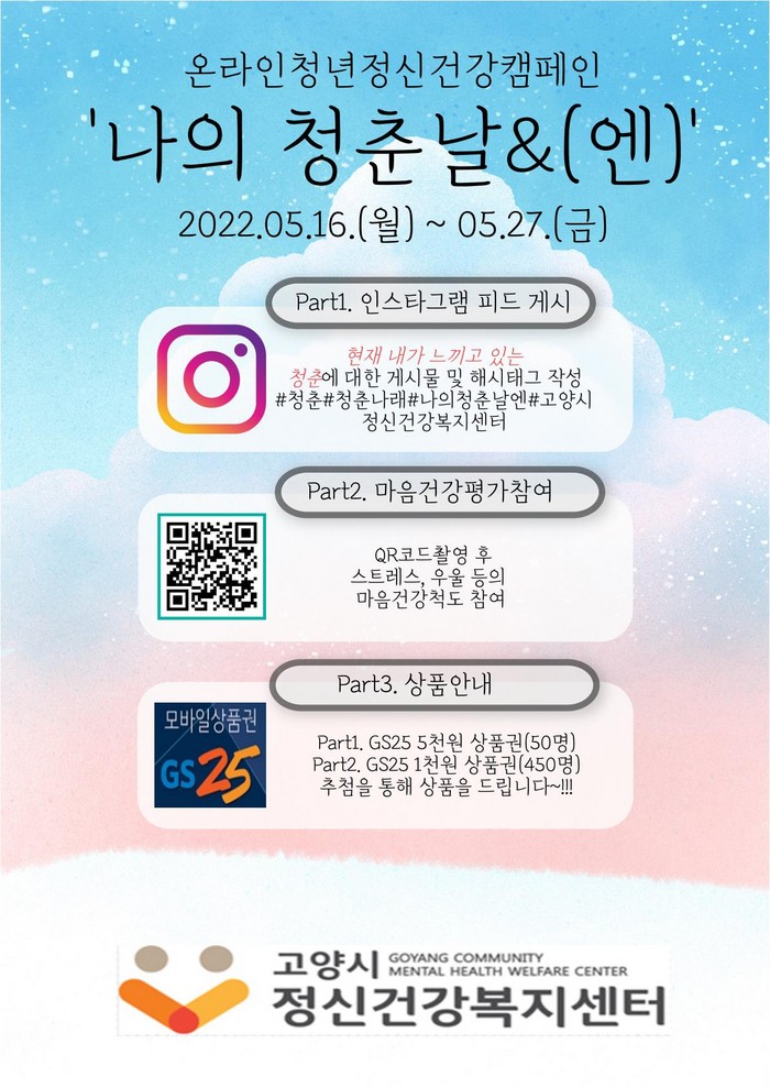 [부자동네타임즈 김인수기자] 고양시정신건강복지센터가 5월 16일부터 5월 27일까지 온라인 청년정신건강 캠페인 ‘나의 청춘날&(엔)’을 진행한다.