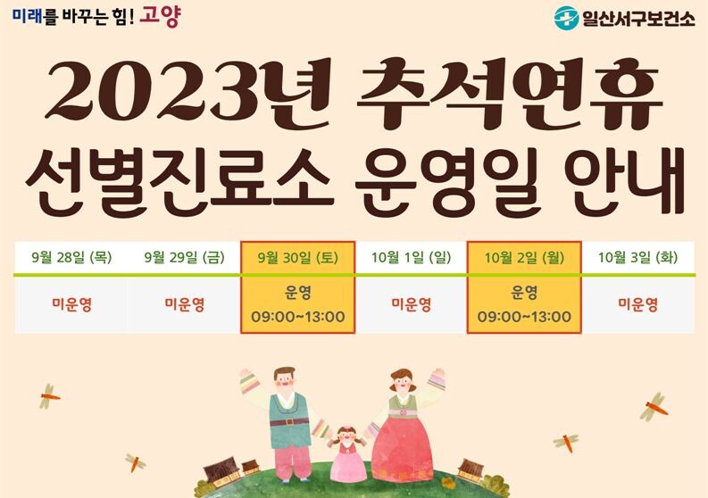 또한, 한글날인 10월 9일(오전 9시 ~ 13시)도 선별진료소를 운영할 계획이다.