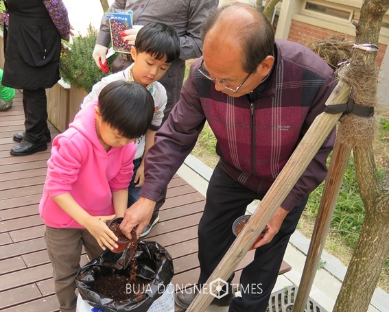 지역 어르신들이 유치원을 방문해 유아들과 함께 유치원의 빈 공터를 텃밭으로 조성하여 상추, 감자를 심고, 화분에 강낭콩을 심으며 생태교육의 장을 만드는 시간으로 마련됐다.