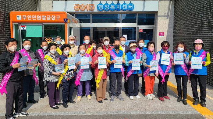 페인은 삼송역을 이용하는 주민과 인근 상점가를 대상으로 진행됐다. 특히 이번 캠페인은 삼송1동 4·5통 경로당 어르신들이 함께했다.