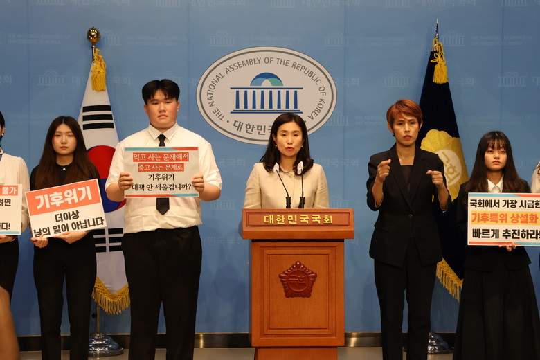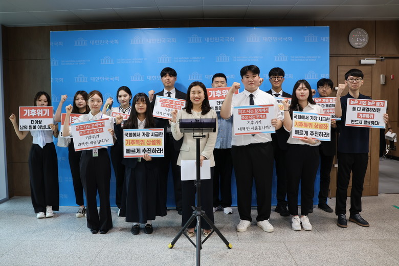 국민의힘 김소희 의원 ( 비례대표 , 환노위 ) 은 7.30. 국회 기후특위 상설화를 위한 국회법 개정안을 대표발의하고 , 국회 소통관에서 기자회견을 통해 기후위기 문제만큼은 여야가 정쟁이 아닌 협치의 모습을 보여야 한다고 촉구했다 . 동 법안에는 국민의힘 환경노동위원회 및 당 기후특위 의원 전원을 비롯해 국민의힘 국회의원 55 명이 공동발의에 참여해 국회 기후특위 상설화 필요성에 대한 강한 의지를 보였다 . 또한 , 이날 기자회견에는 청년들이 동참해 기후위기 대응을 위한 국회의 제대로 된 역할을 함께 촉구했다 .