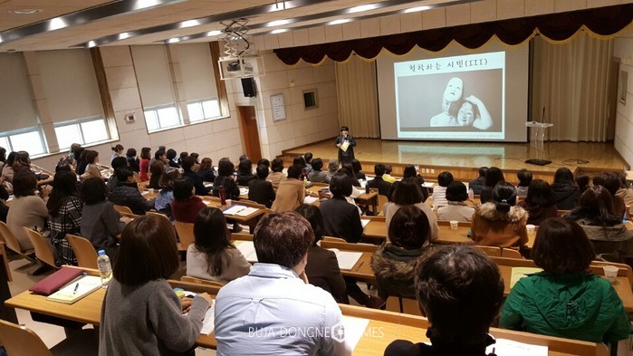 | △광주광역시교육연수원장과 시민자유대학이 공동으로 준비해 운영중인 '민주시민 인문학 강좌'가 쉬운 설명과 시대에 맞는 강의로 참여 시민들에게 호평을 받고 있다 |