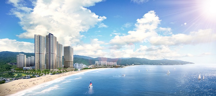 특히 블루마시티 내 최고층 아파트이며 단지 앞에 있는 정자해변 바다 조망이 가능(일부가구 제외)하다.