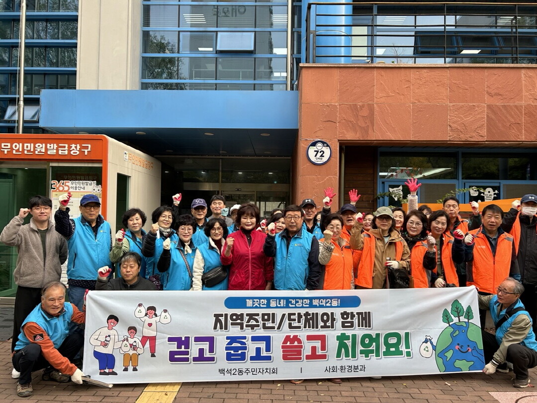 이종찬 백석2동장은 “클린데이에 참여해주신 모든 위원님들과 통장님들께 감사드린다”며 “쾌적하고 살기 좋은 환경을 만들기 위해 지속적으로 노력하겠다”고 밝혔다.