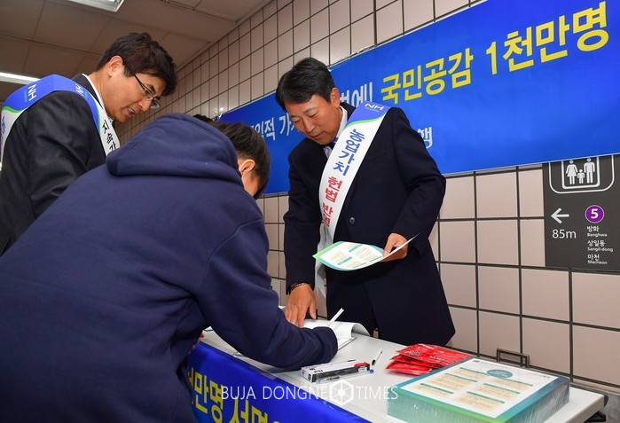 이번 릴레이 가두캠페인은 경영기획부문(수석부행장 이강신)을 시작으로 11월 말까지 매일 점심시간 등을 통해‘농업가치 헌법반영’안내장을 배부하고 서명운동을 실시한다.