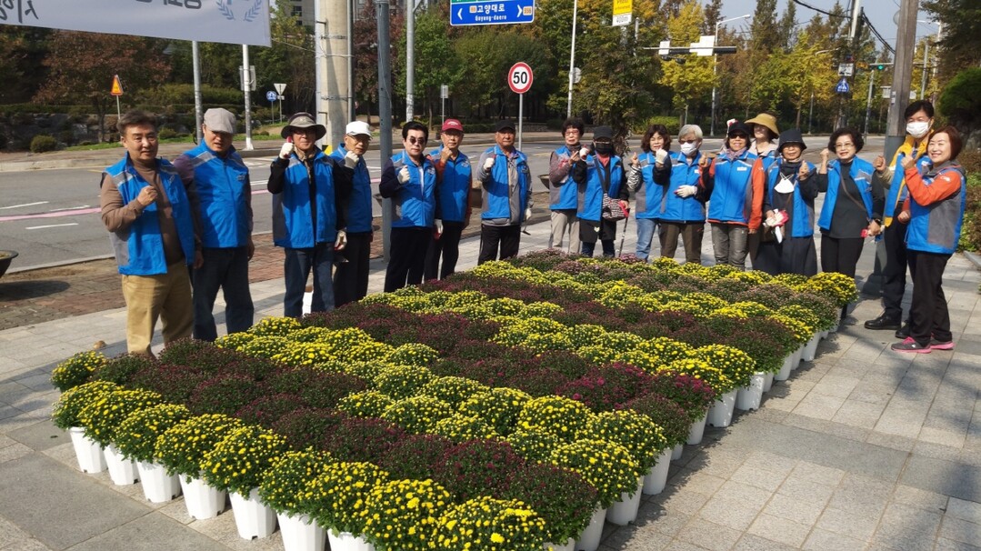 초화 식재는 행정복지센터 주변 화단, 일산지하차도 교차로 주변 및 탄중로 주변 교통섬에서 진행됐고, 국화 300여 본을 심어 생동감 넘치는 거리 환경을 조성했다.