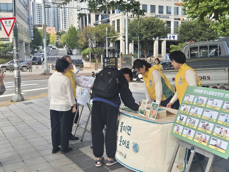 이번 봉사는 생활 속 작은 행동이 지구를 지킨다는 취지로 일상에서 쉽게 실천할 수 있는 방법을 소개하고 탄소중립 인식을 높이는 데 목적을 뒀다.