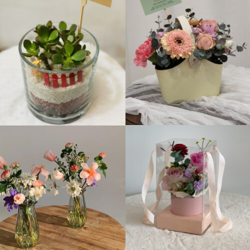 체험 키트는 다육식물 심기, 꽃바구니 만들기 등 다양한 프로그램이 마련되어 있으며, 꽃과 식물에 대한 전문지식이 없는 일반인도 쉽게 화훼 작품을 완성할 수 있도록 꽃과 D.I.Y. 소재, 제작 영상과 안내문이 제공된다.