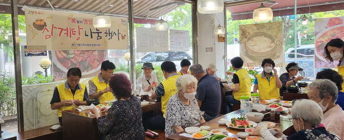 김상용 민간위원장은 “무더운 날씨로 기력이 떨어지셨을 어르신을 모시고 맛있는 보양식을 대접할 수 있어서 보람차다. 특히 가정방문으로만 뵙다가 함께 식사하며 대화를 나누니 더욱 기쁘다”고 말했다.