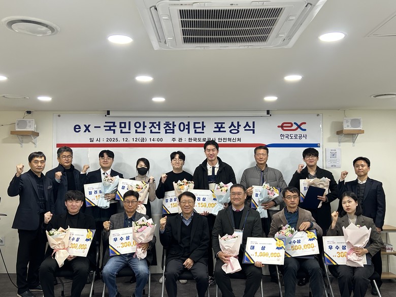 한국도로공사(사장 함진규)는 12일(금) 중대시민재해* 예방을 위한 2025년 국민안전참여단(이하 ’참여단‘)의 우수활동자를 포상했다고 밝혔다.