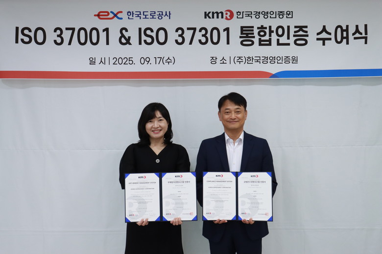 한국도로공사 관계자는 “이번 ISO 37001·37301 인증은 공사의 윤리·준법경영 체계가 국제적 신뢰성을 확보했다는 상징적 성과”라며 “앞으로도 ESG 경영을 실현하는 공기업으로서 투명성과 책임성을 강화하고 국민의 신뢰에 부응하겠다”라고 말했다.